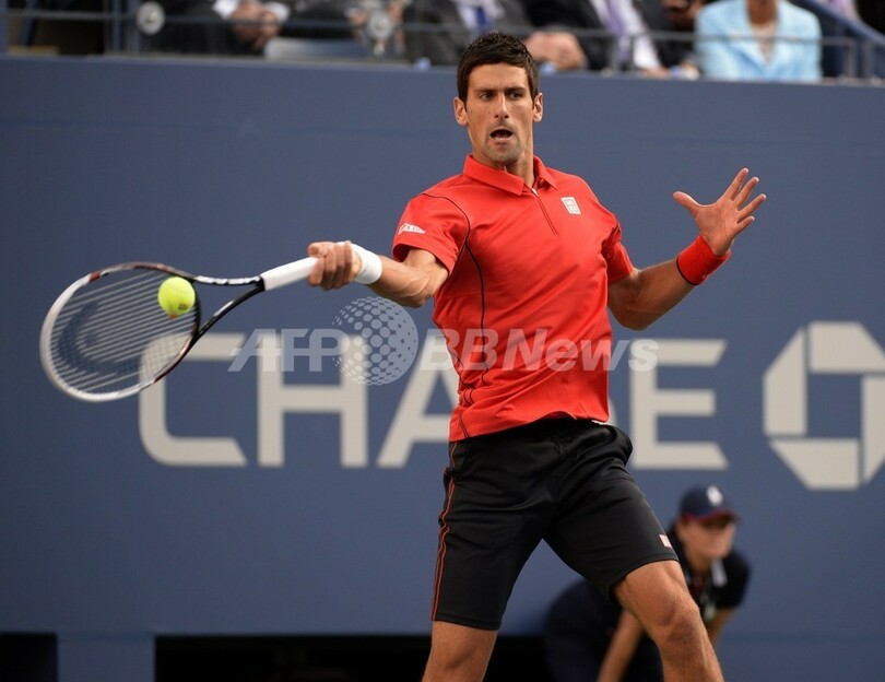 リターンを打つノバク・ジョコビッチ(2013年9月9日撮影)。(c)AFP/TIMOTHY CLARY