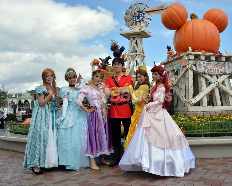 写真は、「ディズニープリンセス」の衣装を着た来園者ら(2013年9月9日撮影)。(c)AFP/Yoshikazu TSUNO