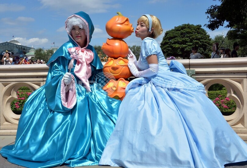 写真は、「ディズニープリンセス」の衣装を着た来園者ら(2013年9月9日撮影)。(c)AFP/Yoshikazu TSUNO