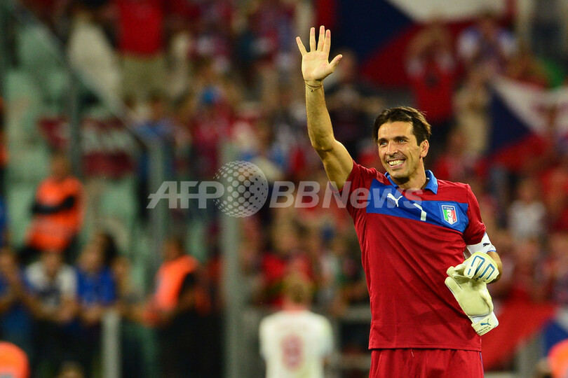 そのためブッフォンが所属するユベントス(Juventus)の本拠地でもあるユベントス・スタジアム(Juventus Stadium)は、お祭りムードに包まれていたが、前半19分にペトル・イラチェク(Petr Jiracek)の折り返しからコザクがハーフボレーでブッフォンから得点を奪うと、ファンは現実に引き戻されていた。(c)AFP/Justin Davis