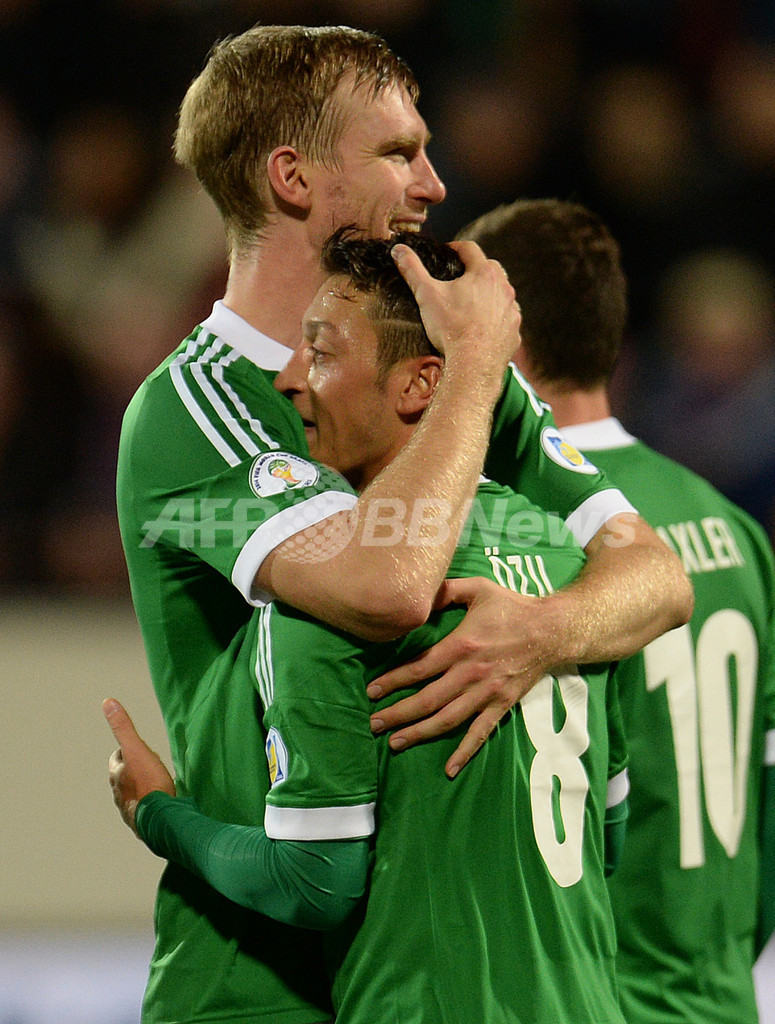 前半はアーセナル(Arsenal)のペア・メルテザッカー(Per Mertesacker)が決めた1点にとどまったドイツは、後半29分に同じくアーセナルの一員となったメスト・エジル(Mesut Ozil)がPKでようやく追加点を挙げると、バイエルン・ミュンヘン(Bayern Munich)のトマス・ミュラー(Thomas Mueller)が終盤に3点目を決めた。