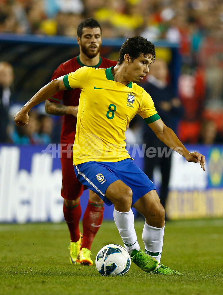 ボールをコントロールするブラジルのエルナネス(Anderson Hernanes、2013年9月10日撮影)。(c)AFP/Getty Images/Jared Wickerham