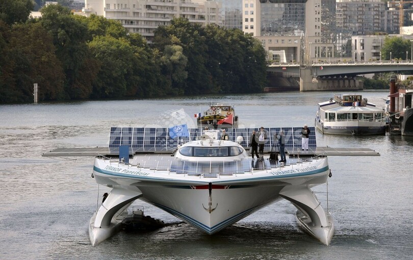 ニュース 環境・科学 世界最大のソーラーボート、パリのセーヌ川を優雅に航行 2013年9月11日 8:30 発信地:パリ/フランス [ ヨーロッパ フランス ] このニュースをシェア ‹ › ❮ 4/11 ❯ 太陽光発電を動力源とする世界最大のソーラーボート「トゥラノール・プラネットソーラー(Turanor PlanetSolar)」が10日、フランス・パリ(Paris)のセーヌ(Seine)川を航行した。ソーラーパネルを張り巡らせた甲板で複数の船体をつないだこの双胴船は、昨年5月4日、総航行距離約6万キロ、航海日数584日をかけて、史上初の太陽光発電による世界一周航海を達成した(2013年9月10日撮影)。(c)AFP/MIGUEL MEDINA 画像作成中 ! 【9月11日 AFP】太陽光発電を動力源とする世界最大のソーラーボート「トゥラノール・プラネットソーラー(Turanor PlanetSolar)」が10日、フランス・パリ(Paris)のセーヌ(Seine)川を航行した。ソーラーパネルを張り巡らせた甲板で複数の船体をつないだこの双胴船は、昨年5月4日、総航行距離約6万キロ、航海日数584日をかけて、史上初の太陽光発電による世界一周航海を達成した。(c)AFP 環境・科学 一覧へ> メディア・報道関係・法人の方向け 写真・動画 購入のお問合せ>