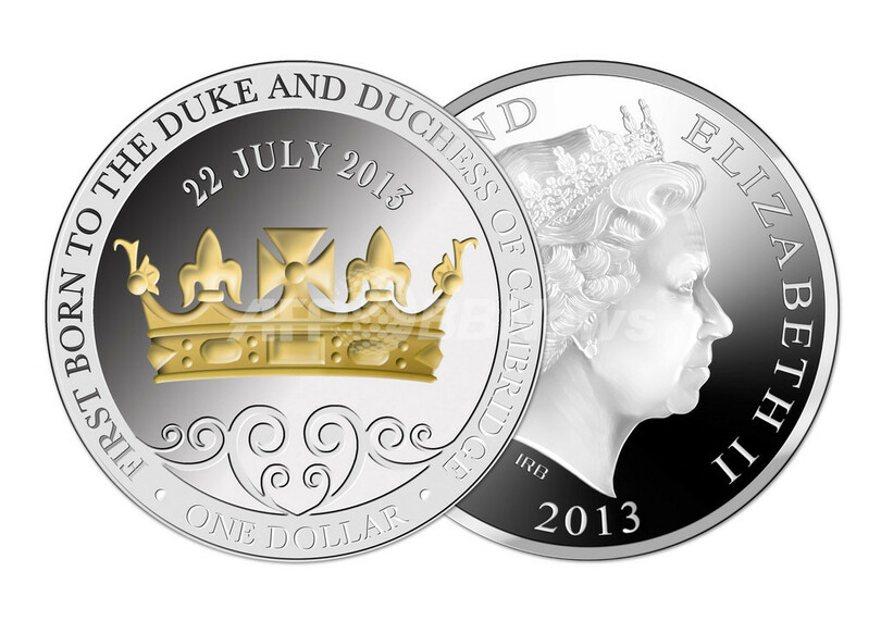 写真は、王子誕生を祝い作られた限定記念銀貨(2013年9月11日提供)。(c)AFP/NEW ZEALAND POST