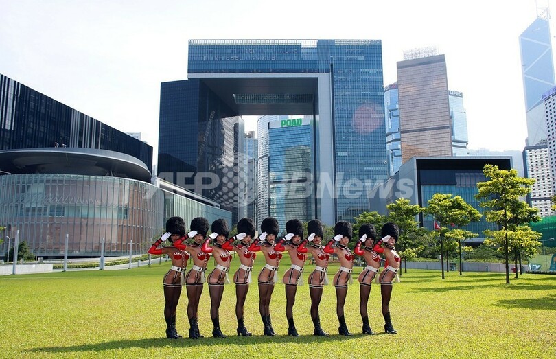 写真は、香港での記念撮影でポーズを決める「クレイジー・ホース」の女性たち(2013年9月10日提供)。(c)AFP/United Events