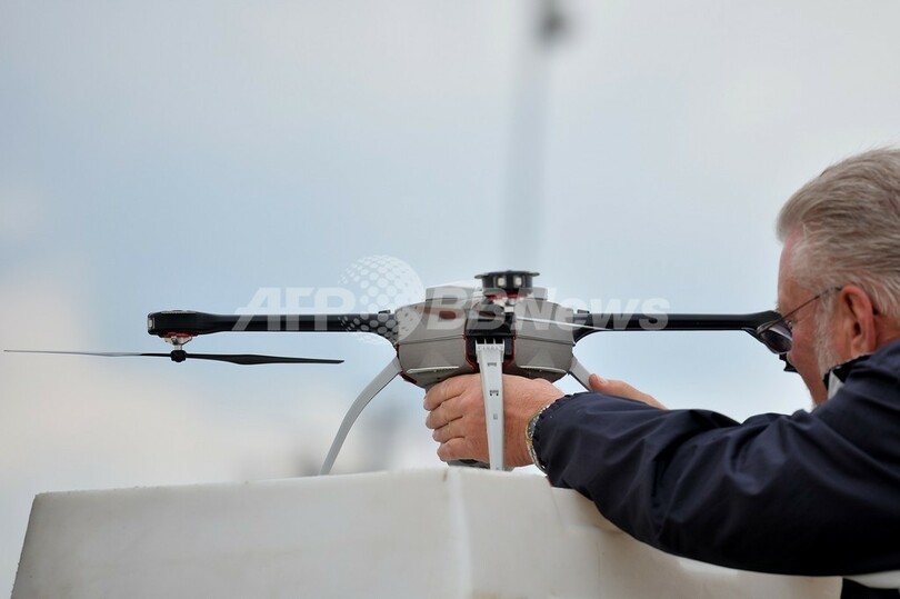 写真は、無人偵察機のデモンストレーション飛行の準備をする技術者(2013年9月10日撮影)。(c)AFP/BEN STANSALL