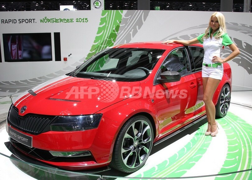 写真は、プレビューイベントで撮影された、フォルクスワーゲン(Volkswagen)グループ傘下でチェコに本拠を置くシュコダ(Skoda)の「ラピッド・スポーツ(Rapid Sport)」(2013年9月11日撮影)。(c)AFP/DANIEL ROLAND