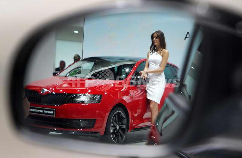 写真は、プレビューイベントで撮影された、フォルクスワーゲン(Volkswagen)グループ傘下でチェコに本拠を置くシュコダ(Skoda)の「ラピッド・スポーツ(Rapid Sport)」(2013年9月11日撮影)。(c)AFP/DANIEL ROLAND