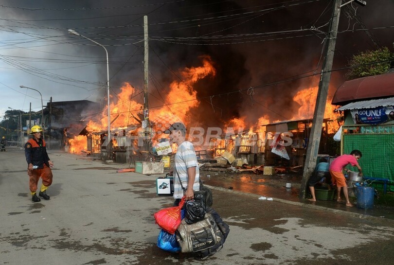 武装勢力との衝突拡大、燃え上がる家々 フィリピン南部
