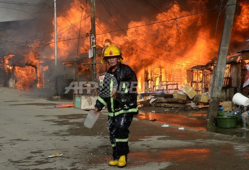 武装勢力との衝突拡大、燃え上がる家々 フィリピン南部
