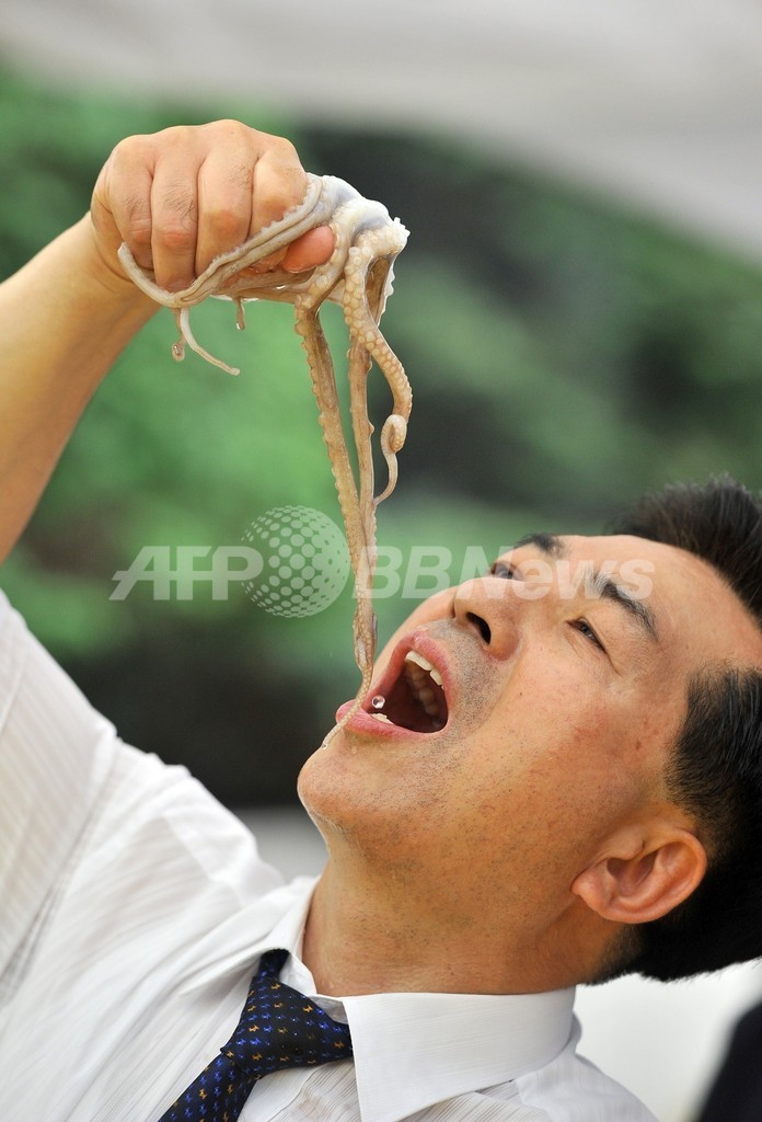 ニュース ライフ こぼれ話 動くタコの足を「パクリ」、韓国でイベント 2013年9月14日 11:42 発信地:ソウル/韓国 [ 韓国・北朝鮮 韓国 ] このニュースをシェア ‹ › ❮ 4/5 ❯ 韓国・ソウル(Seoul)で行われた食品フェスティバルの宣伝イベントで、生きたタコを食べる男性(2013年9月12日撮影)。(c)AFP/JUNG YEON-JE 画像作成中 ! 【9月14日 AFP】韓国・ソウル(Seoul)で12日、食品フェスティバルの宣伝を目的に、生きたタコを食べるイベントが行われた。(c)AFP ライフ 一覧へ> メディア・報道関係・法人の方向け 写真・動画 購入のお問合せ>