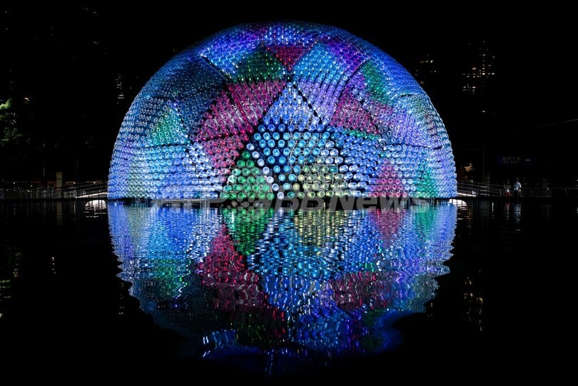 【9月14日 AFP】香港(Hong Kong)で12日、中秋節を祝う巨大なランタンに明かりがともされた。「ライジング・ムーン(Rising Moon、昇る月)」と名付けられたこのランタンは3階建てのビルに相当する高さがあり、環境保護の重要性の認識を高める目的で造られた。リサイクルされたプラスチックのボトル7000本やその他の再生可能な素材、LEDランプが使われている。(c)AFP