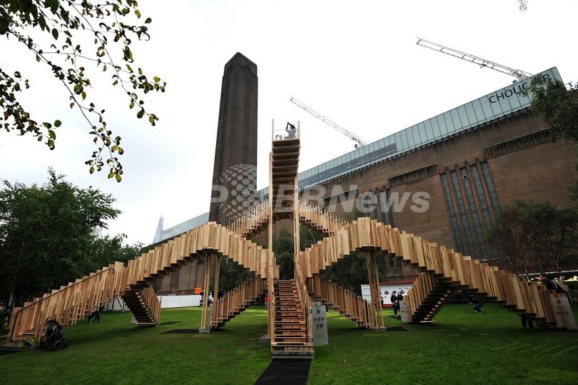 【9月14日 AFP】ロンドン(London)中心部にある美術館、テート・モダン(Tate Modern)の近くにde Rijke Marsh Morgan Architects(dRMM)が制作したインスタレーション、「無限階段(Endless Stair)」。