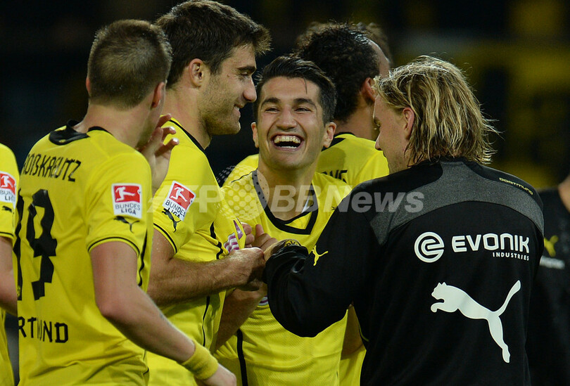 試合に勝利し歓喜するボルシア・ドルトムントの選手(2013年9月14日撮影)。(c)AFP/PATRIK STOLLARZ