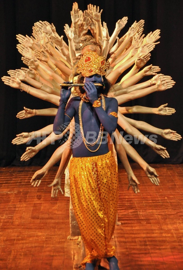 【9月15日 AFP】ヒンズー教のクリシュナ神に扮(ふん)した学生たちのパフォーマンス。健康に対する意識向上を目指す政府プログラムの一環としてインド北部ジャム・カシミール(Jammu and Kashmir)州で14日開かれたイベントでの1こま。グラム・ナビ・アザド(Ghulam Nabi Azad)保健・家族福祉相も出席した。(c)AFP