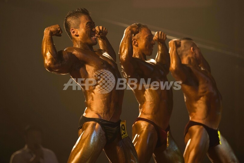 中国におけるボディービルディングは少なくとも100年以上の歴史があるが、中華人民共和国が建国された1949年以降は、西欧文化とブルジョワの象徴とみなされて非難を浴び、競技会はたびたび開催が禁止されて人気が衰えた。だが最近になりふたたび人気を獲得し、今回出場した選手たちの話によると、現在では競技会の数も増え続け、同国のプロ選手たちの地位も上がっているという。(c)AFP