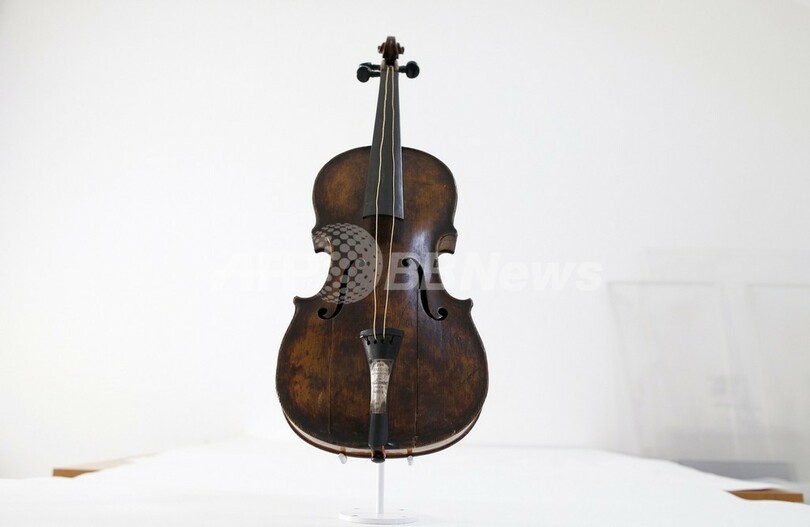 このバイオリンは、沈没事故に関する品々を集めた博物館「タイタニック・ベルファスト(Titanic Belfast)」にて18日から来月13日まで展示された後、英南西部ウィルトシャー(Wiltshire)州で来月19日、オークションにかけられる予定となっている。(c)AFP/Danny KEMP