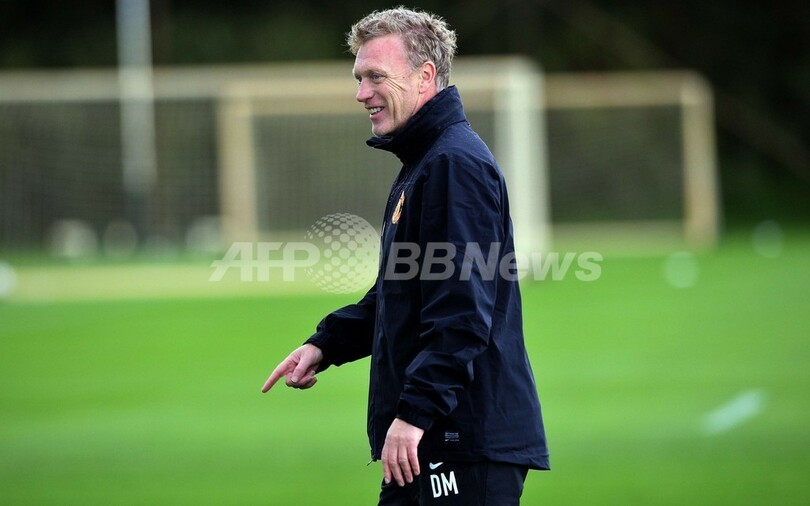 選手の様子を見守るデビッド・モイーズ(David Moyes)監督(2013年9月16日撮影)。(c)AFP/PAUL ELLIS