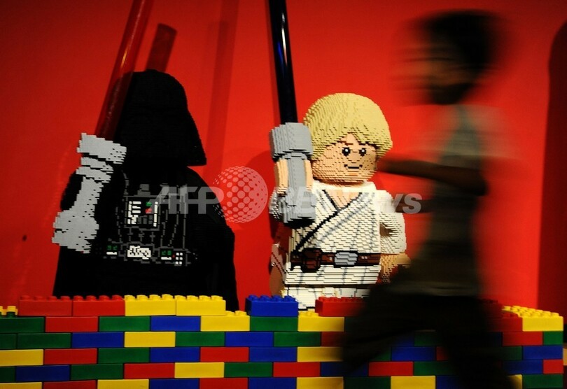 レゴ(Lego)ブロックでできたスター・ウォーズのキャラクター「ダース・ベイダー(Darth Vader)」や「ルーク・スカイウォーカー(Luke Skywalker)」などが展示されており、14日、15日、22日、23日の4日間開催される。(c)AFP