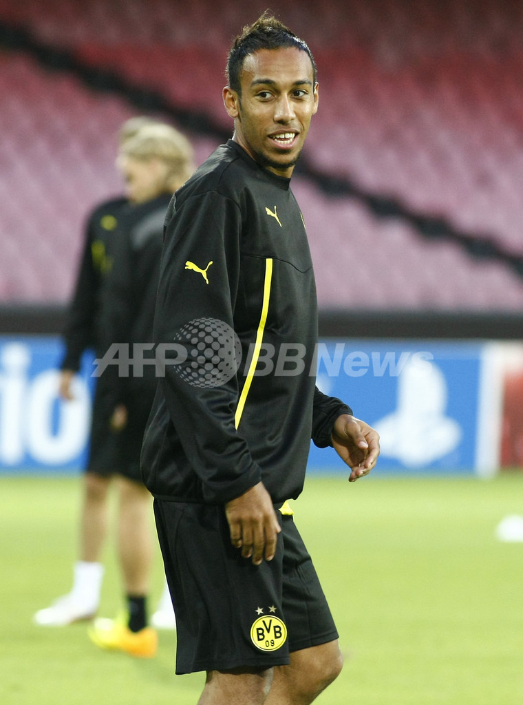 調整に臨むピエール・エメリク・オーバメヤン(Pierre-Emerick Aubameyang、2013年9月17日撮影)。(c)AFP/CARLO HERMANN