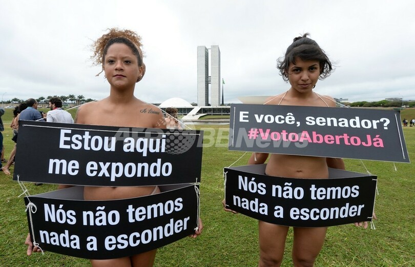 「隠すものはない」、議会の秘密投票に裸で抗議 ブラジル