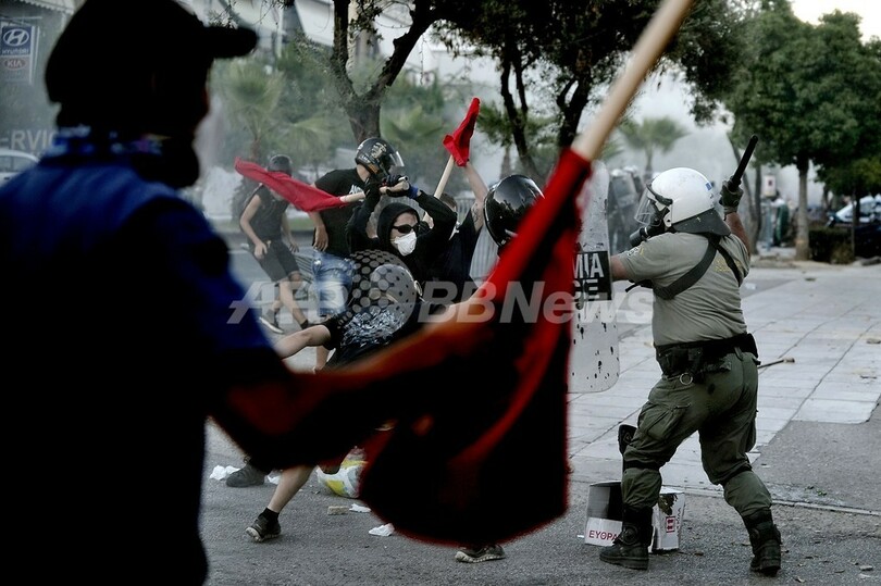 アテネでは約5000人が反ファシズムを訴えてデモ行進したが、一部が木の棒や石を警官隊に投げつけ警察が催涙ガスで応酬、23人が逮捕された。北部テッサロニキ(Thessaloniki)でも6000人余りがデモを行い、店舗の窓ガラスを割るなどしたため警察が催涙ガスで鎮圧に当たった。西部パトラ(Patras)では1000人ほどのデモ隊が石や火炎瓶を投げ、警察と衝突した。(c)AFP