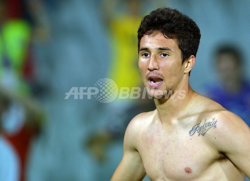 後半22分にチーム2得点目を挙げて喜ぶフィオレンティーナのマトス・ライデル(Ryder Matos、2013年9月19日撮影)。(c)AFP/ALBERTO PIZZOLI