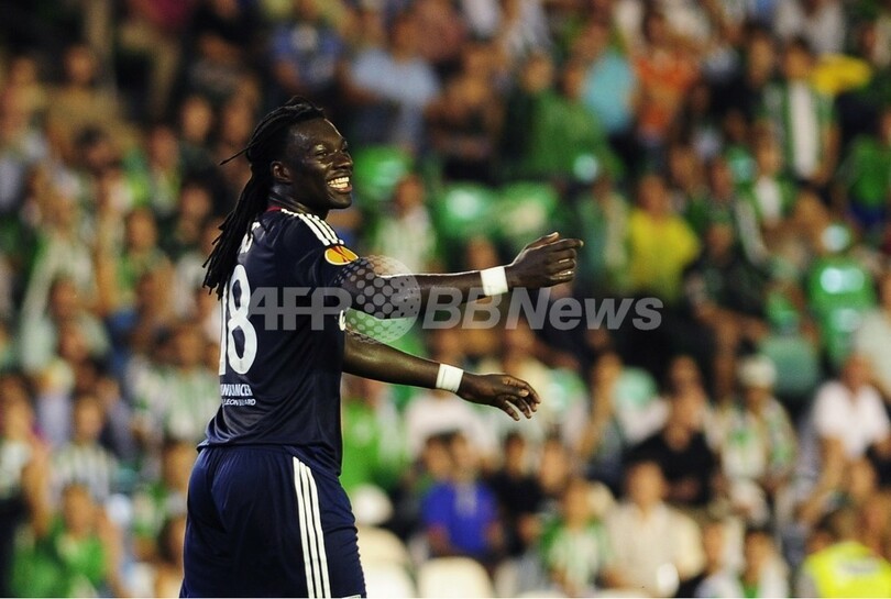 試合に臨むオリンピック・リヨンのバフェタンビ・ゴミス(Bafetimbi Gomis、2013年9月19日撮影)。(c)AFP/CRISTINA QUICLER