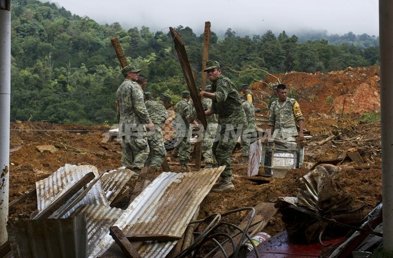 【9月20日 AFP】メキシコで19日、新たなハリケーンが北西部に上陸した。一連の暴風雨により発生した洪水や土砂崩れによる死者は合計で100人近くに上り、土砂に埋まった村では、新たな土砂崩れが起きる恐れがある中、行方不明になっている58人の捜索が行われている。