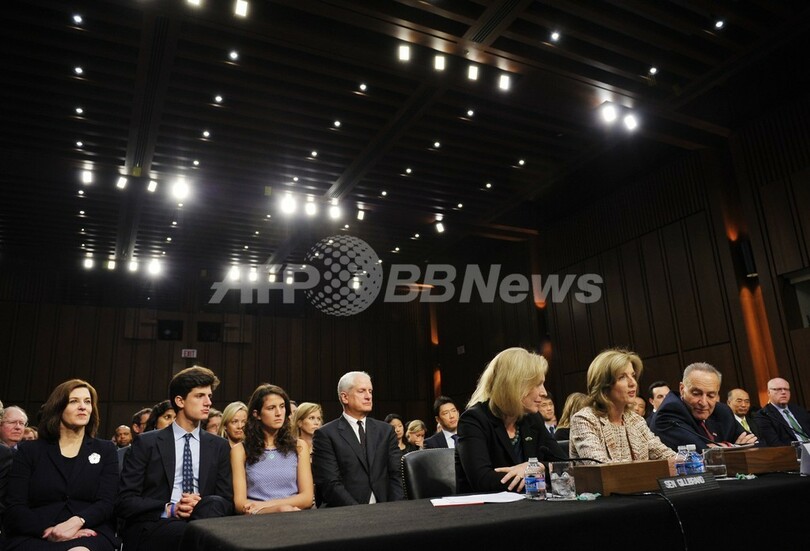 写真は、上院外交委員会の公聴会に出席したキャロライン・ケネディ氏(手前テーブルに着席した中央の人物、2013年9月19日撮影)。(c)AFP/Mandel NGAN