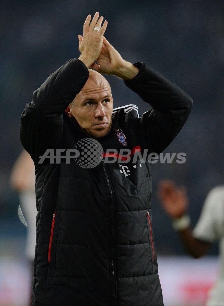 勝利を喜ぶバイエルン・ミュンヘンのアリエン・ロッベン(Arjen Robben、2013年9月21日撮影)。(c)AFP/ PATRIK STOLLARZ