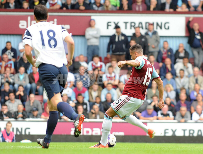 先制ゴールを決めるウェストハムのラヴェル・モリソン(Ravel Morrison、右、2013年9月21日撮影)。(c)AFP/OLLY GREENWOOD