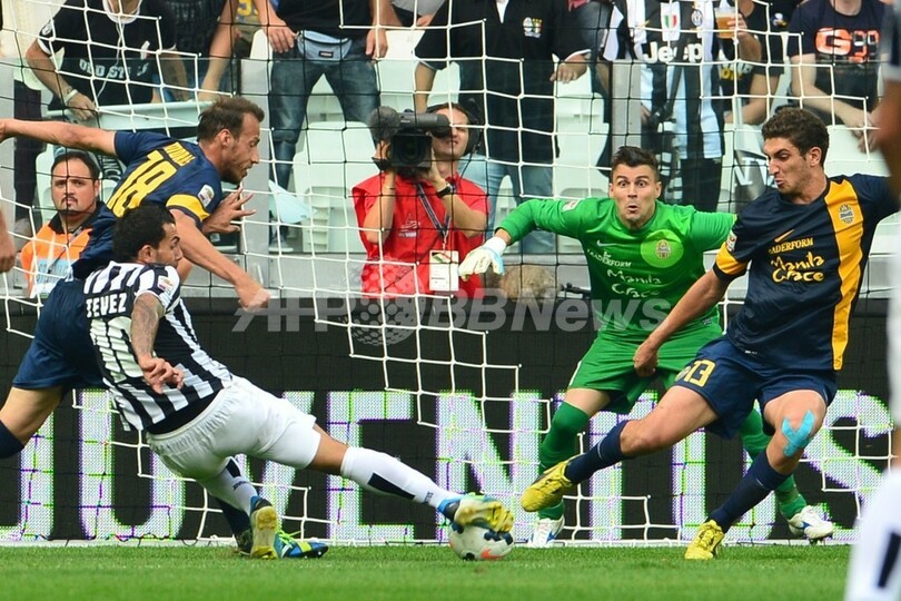 しかし前半40分、レオナルド・ボヌッチ(Leonardo Bonucci)の華麗なスルーパスを受けたカルロス・テベス(Carlos Tevez)が角度のない位置からシュートを狙い、エラス・ベローナのGKラファエウ(Rafael de Andrade Bittencourt)を破った。