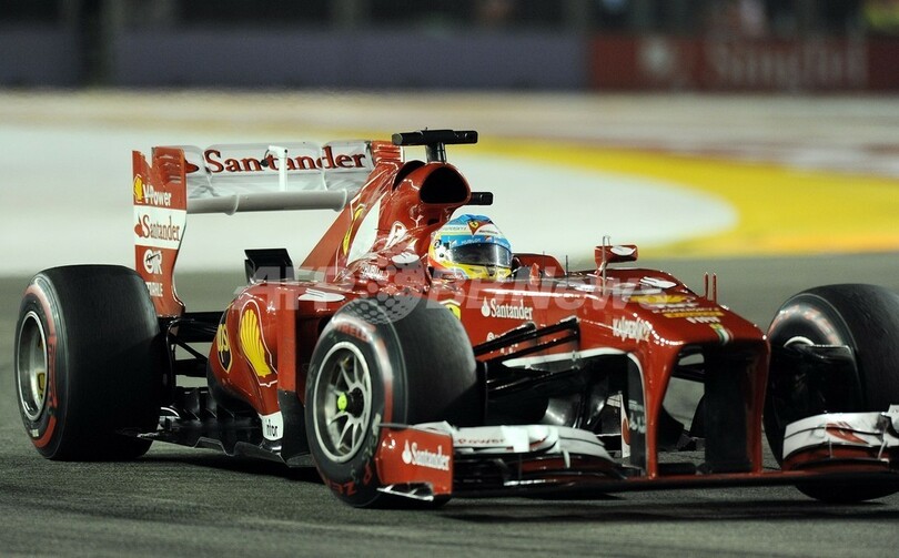 レースに臨むフェラーリ(Ferrari)のフェルナンド・アロンソ(Fernando Alonso、2013年9月22日撮影)。(c)AFP/MANAN VATSYAYANA