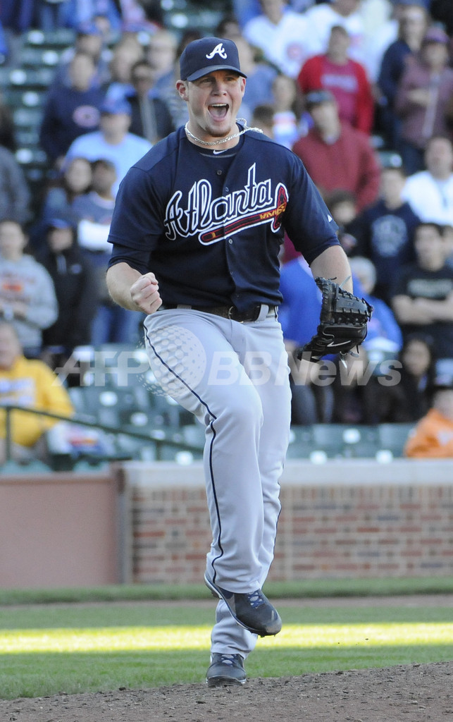 9回に登板し、勝利を喜ぶアトランタ・ブレーブスのクレイグ・キンブレル(Craig Kimbrel、2013年9月22日撮影)。(c)AFP/Getty Images/David Banks