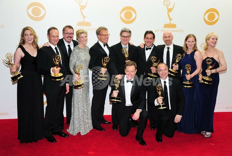 【9月23日 AFP】米ロサンゼルス(Los Angeles)で22日、第65回プライムタイム・エミー賞(Primetime Emmy Awards)授賞式が行われ、内気な高校の化学教師がある事をきっかけに麻薬密売に手を染めていく姿を描く「ブレイキング・バッド(Breaking Bad)」がドラマ・シリーズ部門作品賞に選ばれた。コメディー・シリーズ部門の作品賞は、「モダン・ファミリー(Modern Family)」が4年連続で受賞した。