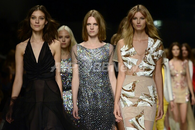 【9月23日 AFP】イタリア・ミラノ市内で18日から23日まで14年春夏ミラノコレクションが開催されている。 20日、アンナ・モリナーリ(Anna Molinari)が手掛ける「ブルマリン(Blumarine)」が新作を発表した。(c)AFP