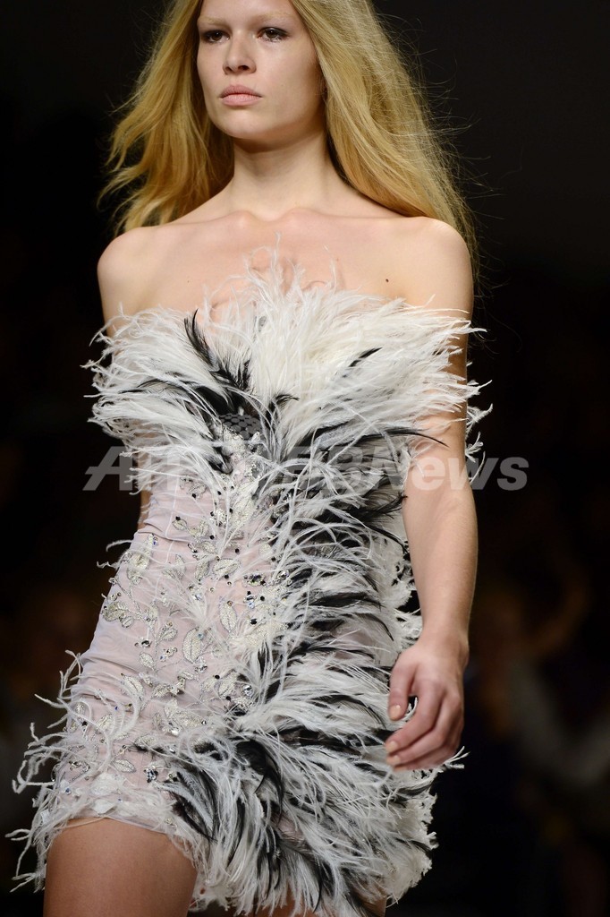 【9月23日 AFP】イタリア・ミラノ市内で18日から23日まで14年春夏ミラノコレクションが開催されている。 20日、アンナ・モリナーリ(Anna Molinari)が手掛ける「ブルマリン(Blumarine)」が新作を発表した。(c)AFP