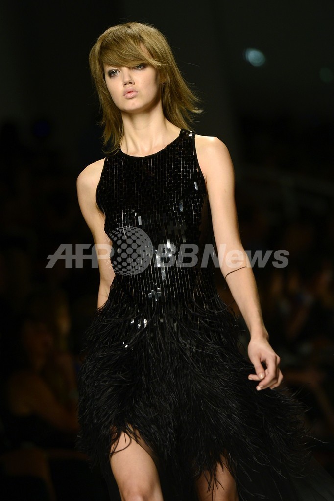 【9月23日 AFP】イタリア・ミラノ市内で18日から23日まで14年春夏ミラノコレクションが開催されている。 20日、アンナ・モリナーリ(Anna Molinari)が手掛ける「ブルマリン(Blumarine)」が新作を発表した。(c)AFP