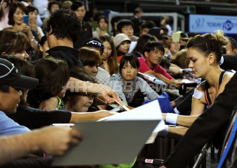 ファンのサインに応じるアニエスカ・ラドワンスカ(2013年9月24日撮影)。(c)AFP/TOSHIFUMI KITAMURA