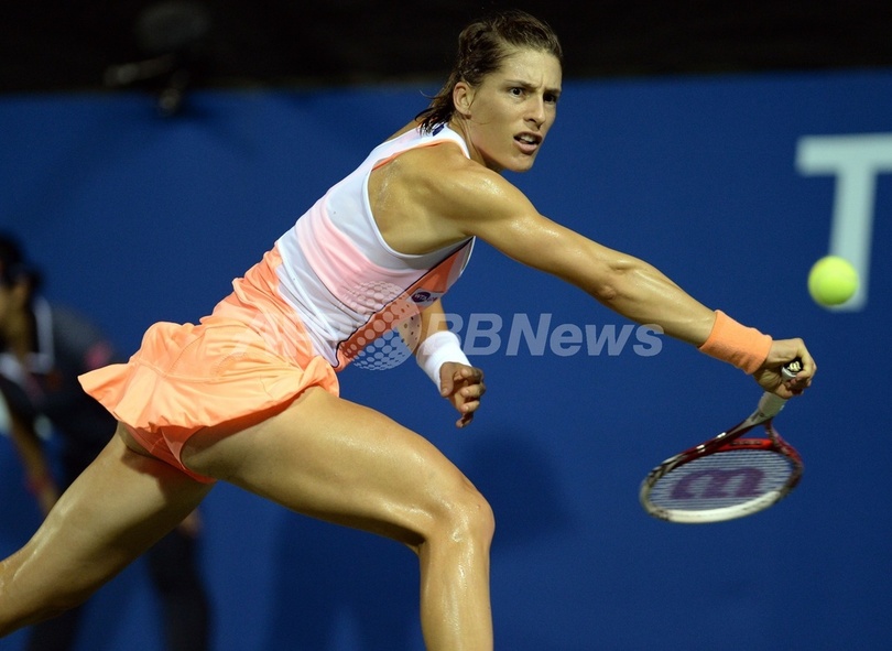 リターンを打つアンドレア・ペトコビッチ(2013年9月24日撮影)。(c)AFP/TOSHIFUMI KITAMURA