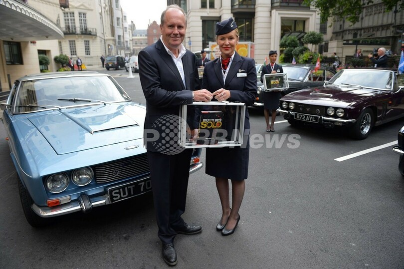 【9月26日 AFP】英ロンドン(London)中心部のホテル、ドーチェスター(The Dorchester)前で25日、発売を翌日に控えた人気小説シリーズ「007」の新作「ソロ(Solo)」の出版記念イベントが開催され、ビンテージカーや魅惑的な客室乗務員と共に、著者の英作家ウィリアム・ボイド(William Boyd)氏(61)も登場して新著をアピールした。