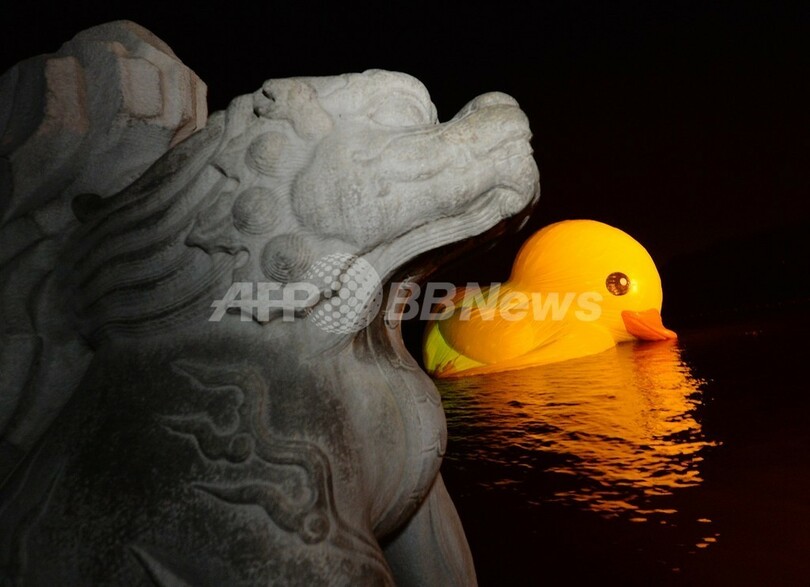 黄色い「巨大アヒル」、今度は北京の歴史的名所に登場