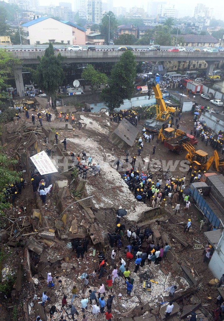 ムンバイ市内および近郊ではこの数か月で他に5棟の住居用ビルが倒壊しており、4月に起きた倒壊事故では74人が死亡した。未熟な建設技術や違法建築が原因とされ、背景として住宅需要の爆発的な増加と汚職のまん延が指摘されている。(c)AFP