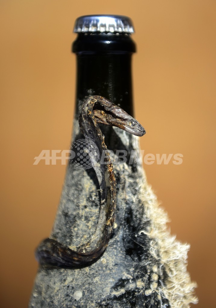 写真は引き揚げられたワインボトルに付着したウナギの死骸(2013年9月25日撮影)。(c)AFP/OLIVIER MORIN