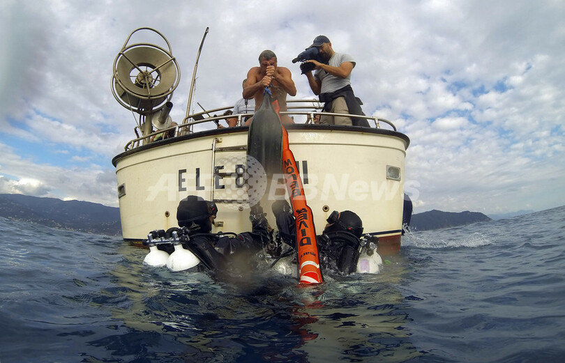 【9月28日 AFP】イタリア北部キアバリ(Chiavari)で25日、水深60メートルの海中に約4年間、保存されていたスパークリングワインのボトルが引き揚げられた。