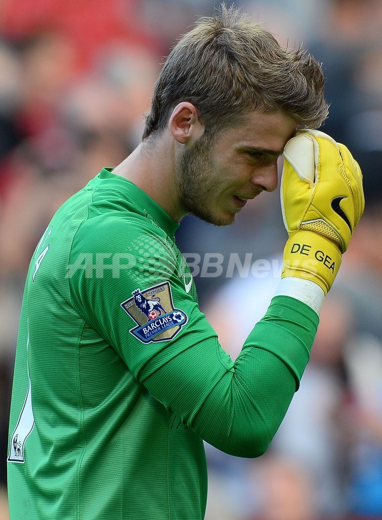 試合に敗れ、ピッチを後にするマンチェスター・ユナイテッドのGKダビド・デ・ヘア(David de Gea、2013年9月28日撮影)。(c)AFP/ANDREW YATES