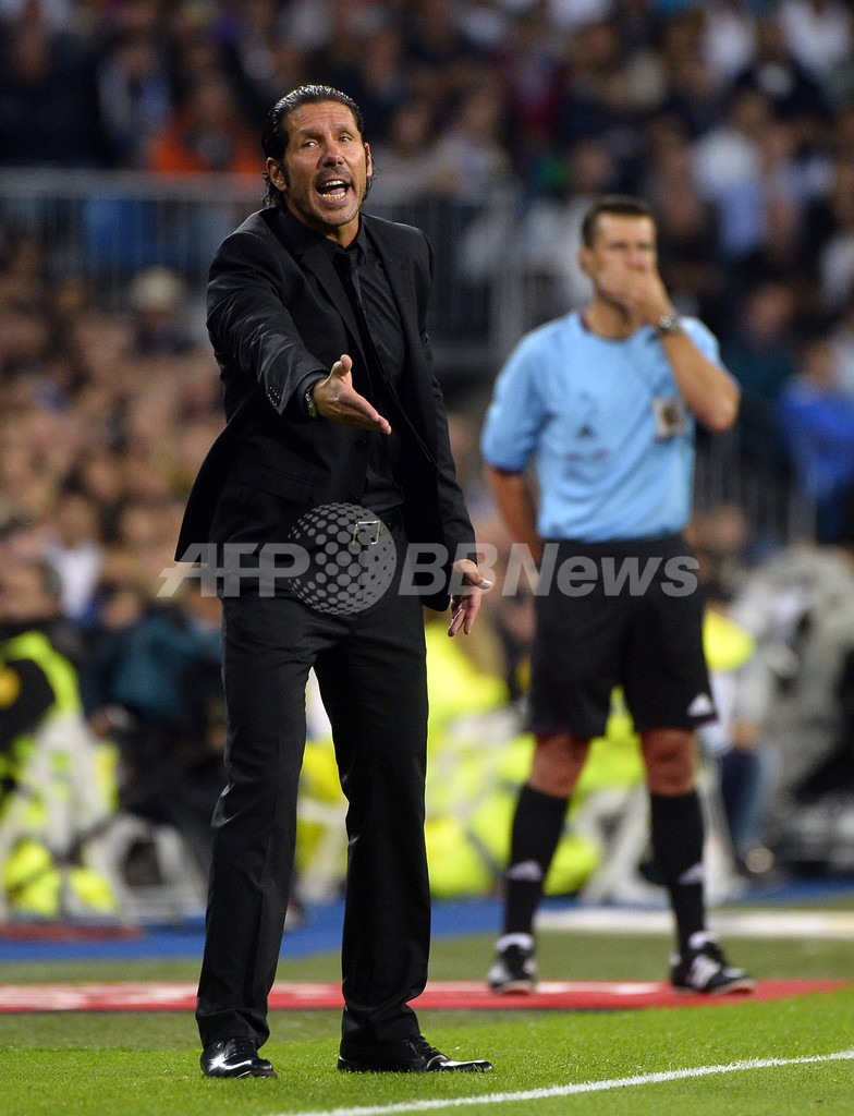 試合中、指示を出すアトレティコ・マドリードのディエゴ・シメオネ(Diego Simeone)監督(2013年9月28日撮影)。(c)AFP/GERARD JULIEN