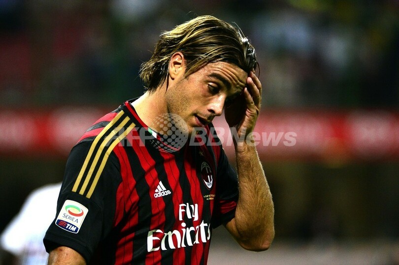 試合に臨むACミランのアレッサンドロ・マトリ(Alessandro Matri、2013年9月28日撮影)。(c)AFP/OLIVIER MORIN
