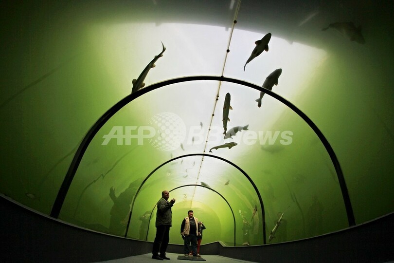 【10月3日 AFP】チェコ・南モラバ(South Moravia)州の都市ブルノ(Brno)から南東へ70キロほど離れたマドラ(Madra)には、湖の中に作られた透明な壁を持つトンネルがある。長さ8メートルほどのこのトンネルは、深さ3メートルの位置にあり、窓の外を泳ぐチョウザメやコイ、ナマズ、マスやウナギなどを観察することができる。(c)AFP